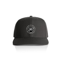 Plastic snapback, light grey under-peak lining, stitching eyelets, self fabric dome at top